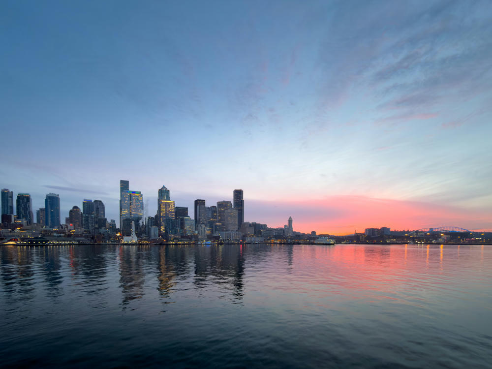 I was on the ferry from Bainbridge Island to Seattle this morning. Perfectly timed for a brilliant sunrise.